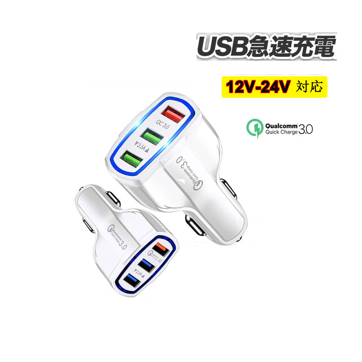 - カーチャージャー DC12-32V 車対応最大MAX7A USB3ポート白