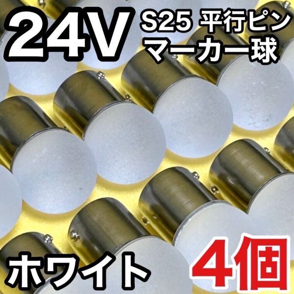> ホワイト 4個セット 24V トラック用品 S25 シングル BA15S 平行ピン シングル球 角マーカー サイドマーカー バスマーカー 雫バルブ