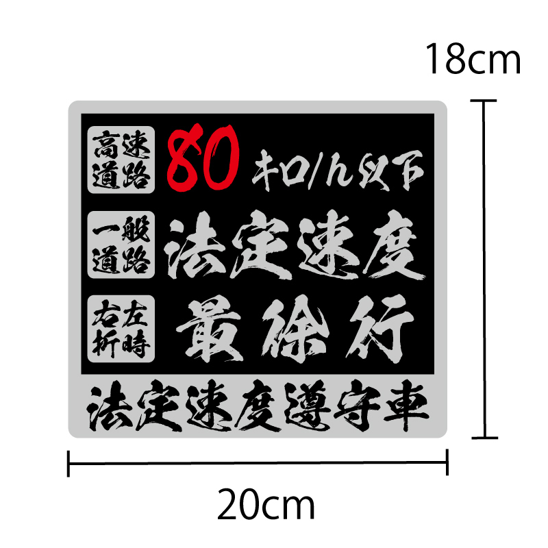 > (シルバー)法定速度遵守 ステッカー 1枚 銀フチ(20cm)長期屋外用 ラミネート加工 筆文字 和風 和柄 車両用 トラック デコトラ