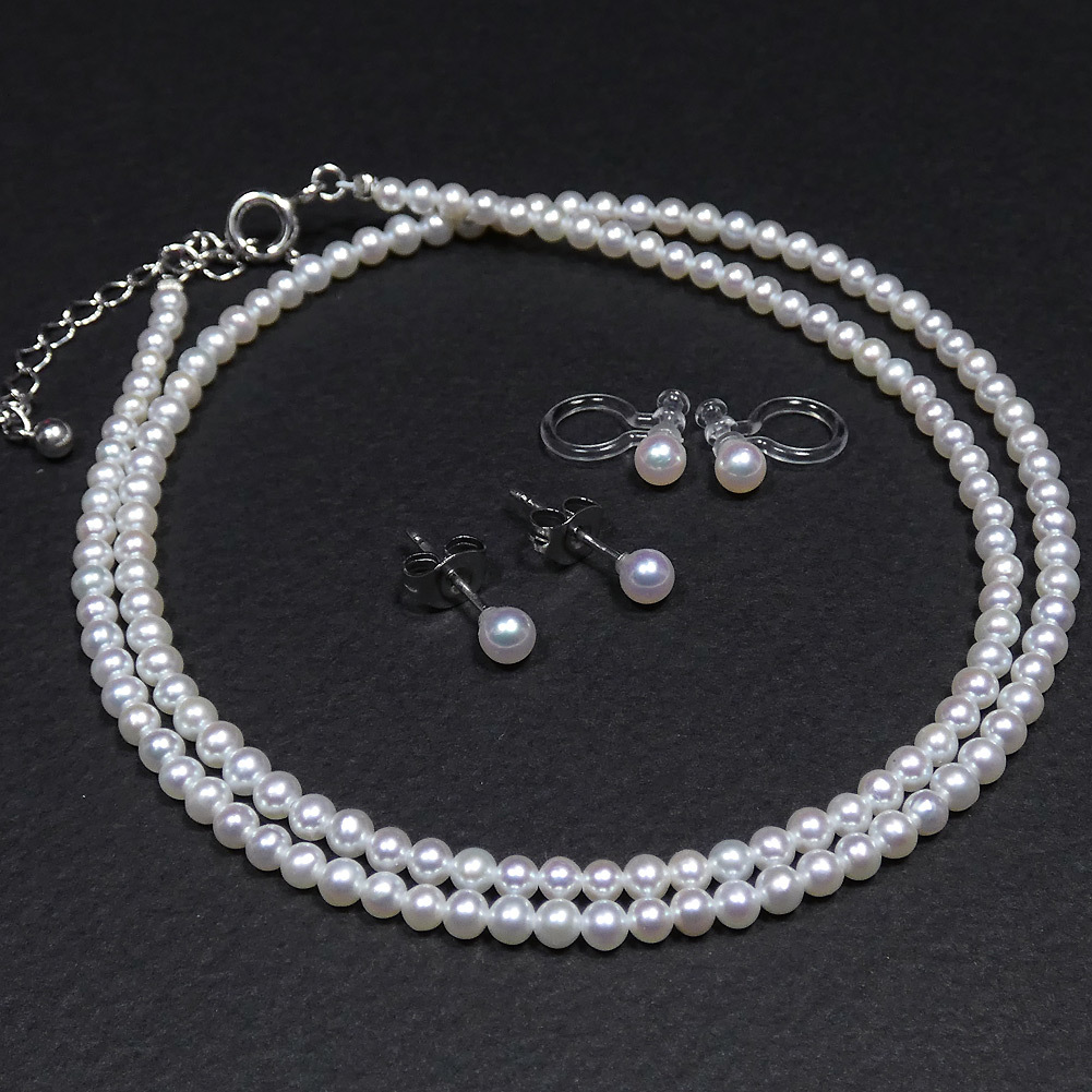 - 希少パーフェクト!ベビーパールネックレス3.0mmUP ネックレスピアスor透明イヤリングホワイトピンク系真珠有核養殖産 A552