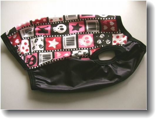 > 女の子用犬服X00-LS■LSサイズ■コーギーS等中型犬用ネガドクロ柄泥除けTシャツ*ピンク色系ハンドメイド雨上がりのお散歩用