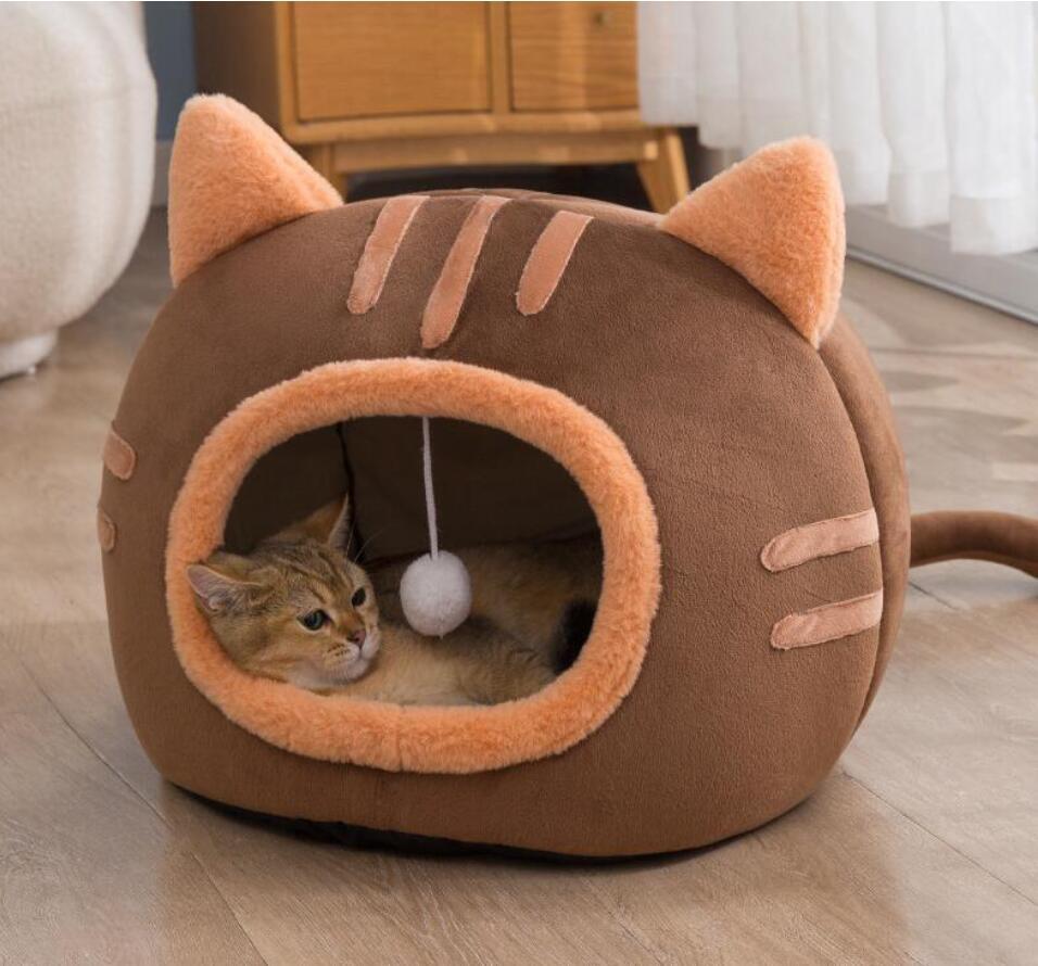 - 新入荷 / 猫ベッド ねこ ハウス冬猫のベッド 洗える暖かい 子犬小型犬 ベッド ドーム型 キャット ベッド もこもこ クッション付き/コーヒー