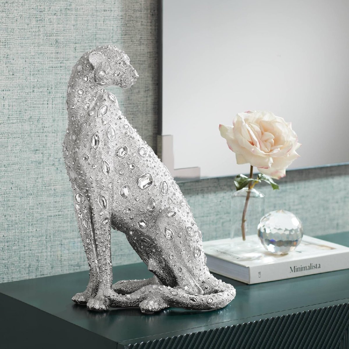 - 座る彪ヒョウ高さ40.6cmハイシルバー彫像インテリア装飾アート工芸置物ホームアニマル動物フィギュア輸入品