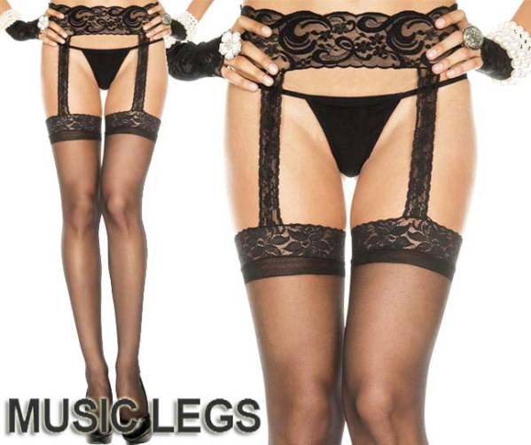 > A542)MusicLegsサスペンダーストッキング ML7800 ブラック 黒 網タイツ ダンス 衣装 パーティー ミュージックレッグ ガーターストッキング