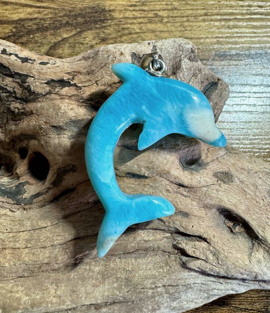 - ■ハイクオリティ カリビアンブルー ラリマー ペンダントトップ イルカ 透け感あり 天然石 ☆。.:*・゜33000