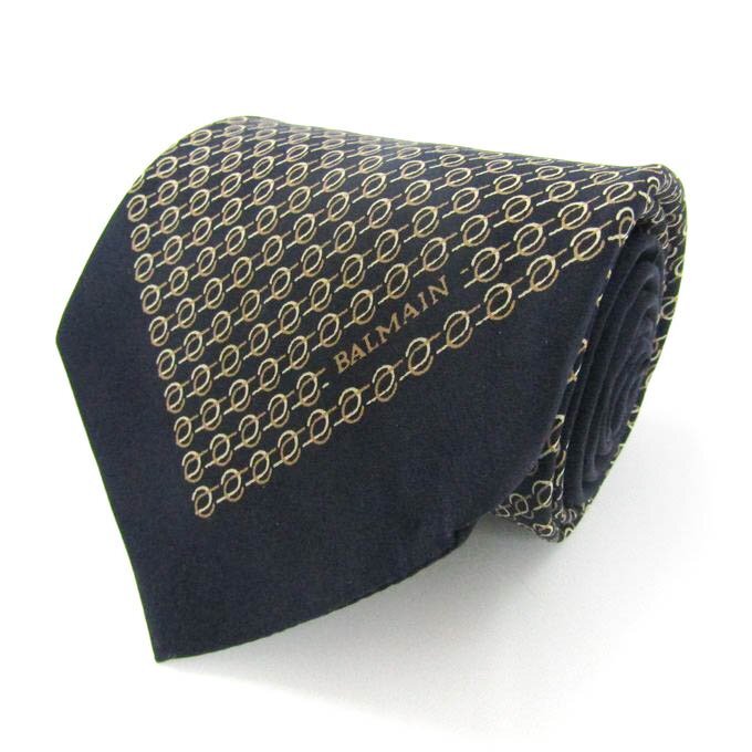 - ピエールバルマン ブランド ネクタイ ロゴ パネル柄 ドット シルク メンズ ネイビー PIERRE BALMAIN