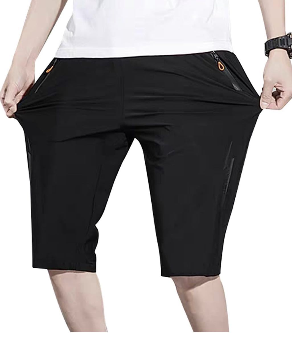 - メンズ ハーフパンツ 夏服 冷感パンツ アイスシルクパンツ 7分丈 ストレッチ 接触冷感 クロップドパンツ ショートパンツ 黒2xL