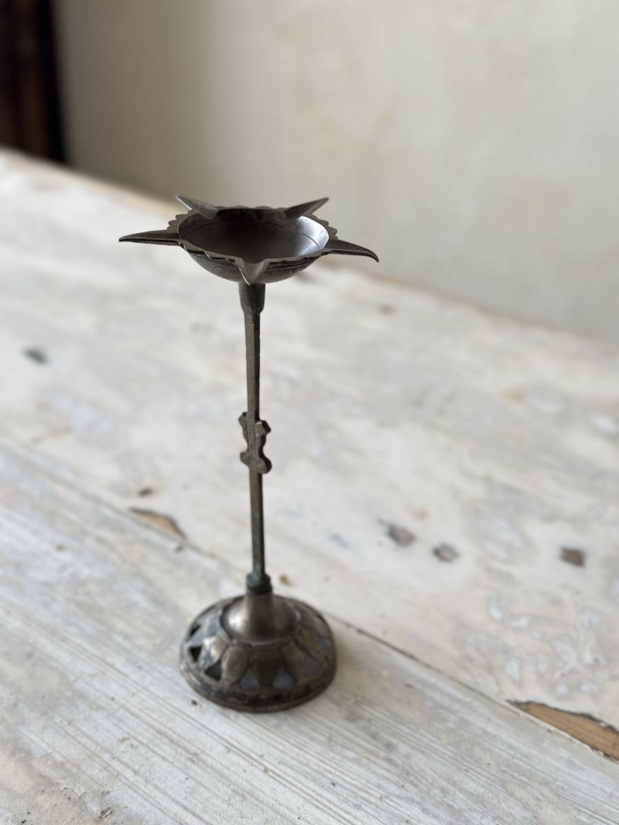 > アンティーク オイルランプ 真鍮製 燈明皿 ランプ インド インテリア ディスプレイ 真鍮 時代物 古美術 トライバル 古銅 古道具