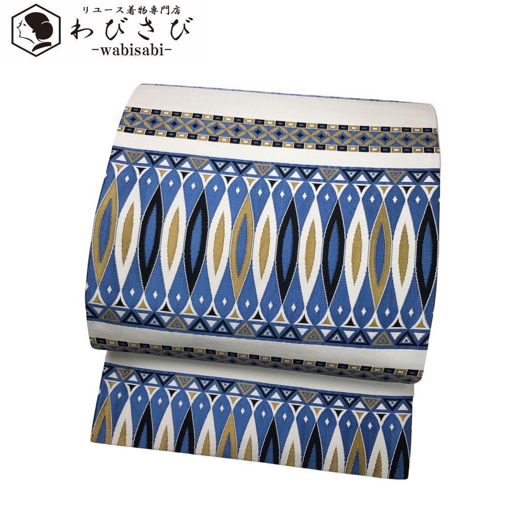 - 袋帯 風通織 美しいモダンな幾何学模様 白色 O-3522