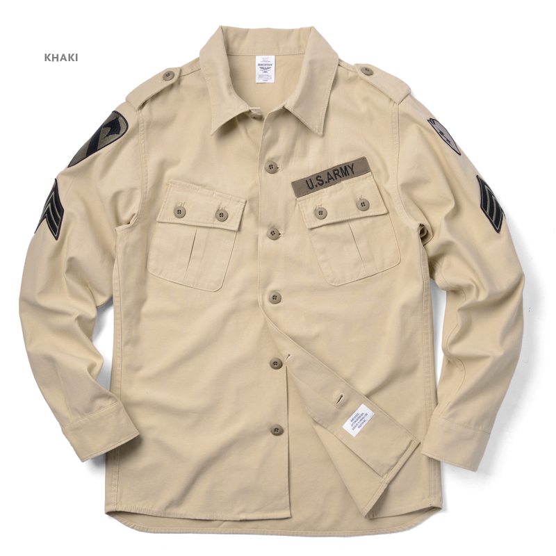> 残り1枚 大特価 値下げ HOUSTON PATCH FATIGUE シャツ カーキ Mサイズ ファティーグ ミリタリー KH 長袖 バックサテン 40339