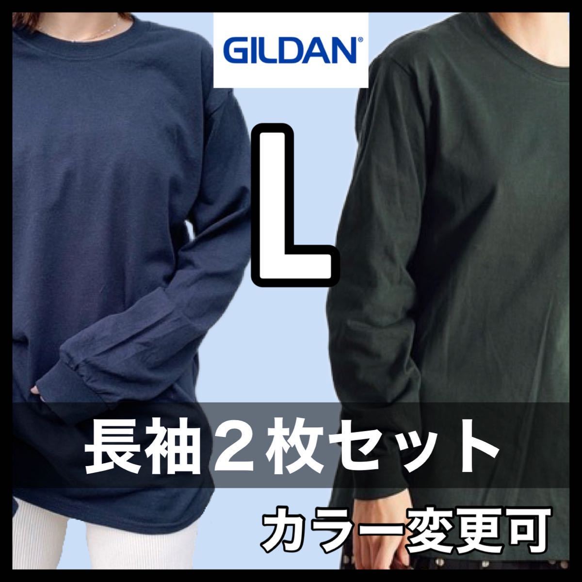 - 新品未使用 ギルダン 6oz ウルトラコットン 無地 長袖Tシャツ ロンT 黒 ブラック フォレスト 2枚セット Lサイズ ユニセックス GILDAN