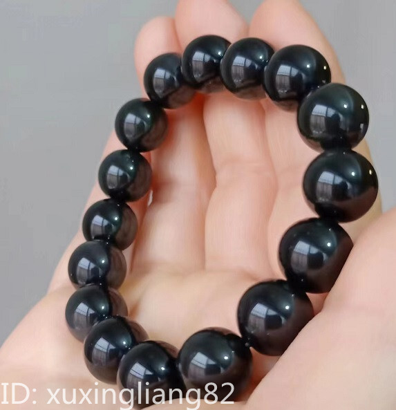 - 高級逸品★天然黒曜石 ブレスレット12mm メンズ バングル パワーストン 開運 財運 お守り 男女兼用 アクセサリー