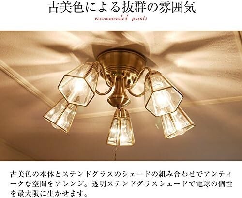 - KML シャンデリア 天井照明 5灯 照明器具 北欧 6畳 8畳 10畳 12畳 STERN クリアステンドガラス 明るい【電球なし】