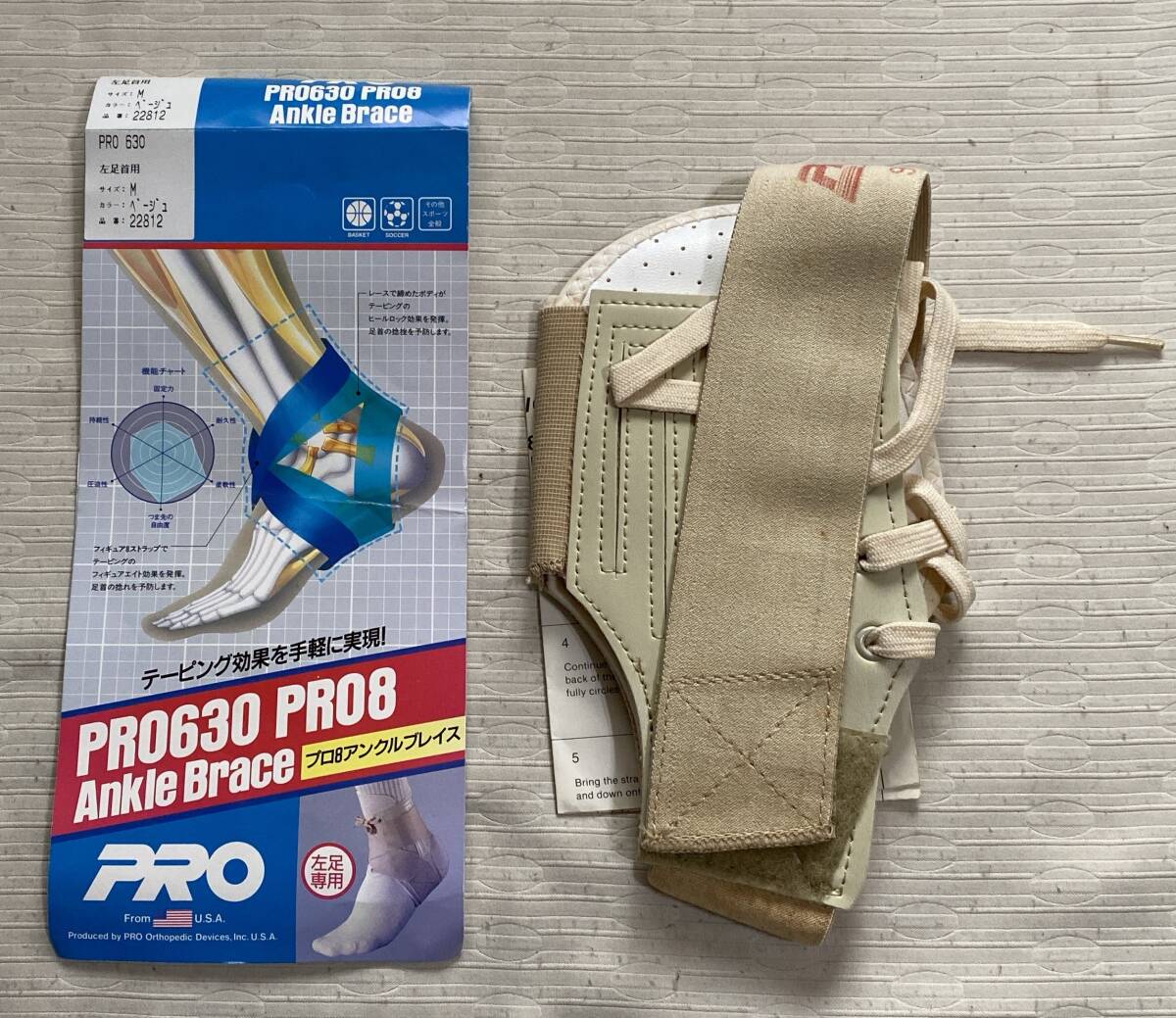 > アンクルブレイス サポーター PRO630puro8 M(22~26cm)サイズ 左足首用 ベージュ色 薄汚れ有り/未使用品