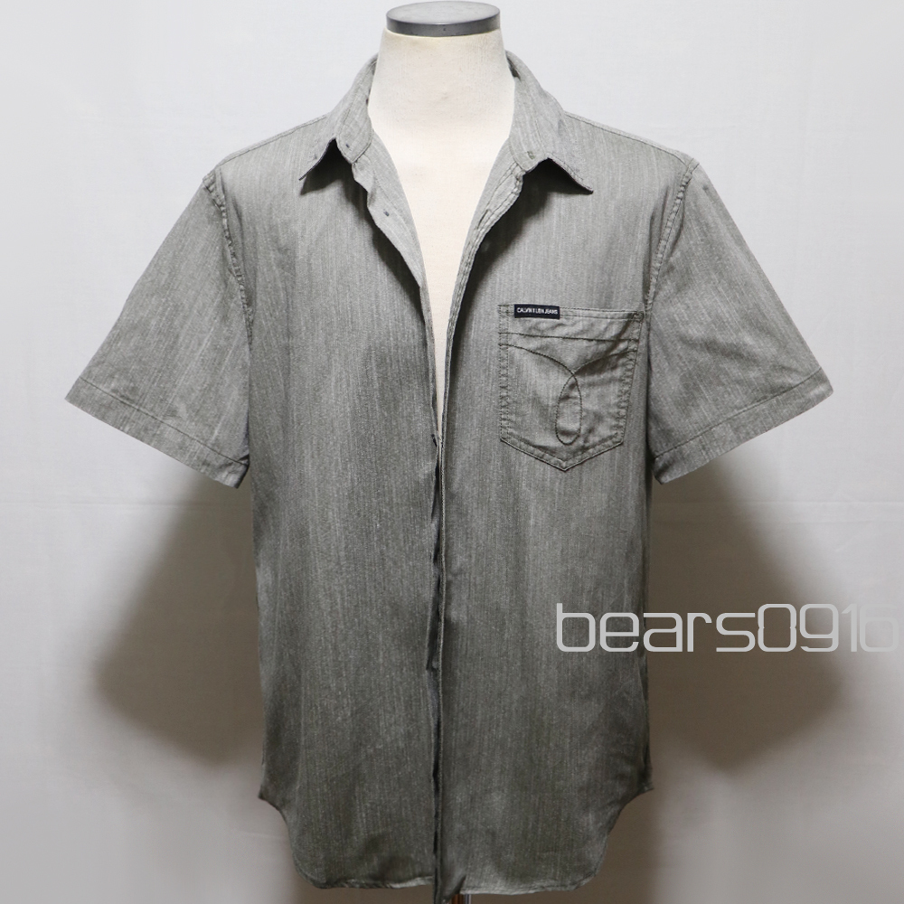 - アメリカ購入品 美品 Calvin Klein カルバンクライン オックスフォード 半袖シャツ グレイッシュカーキ L
