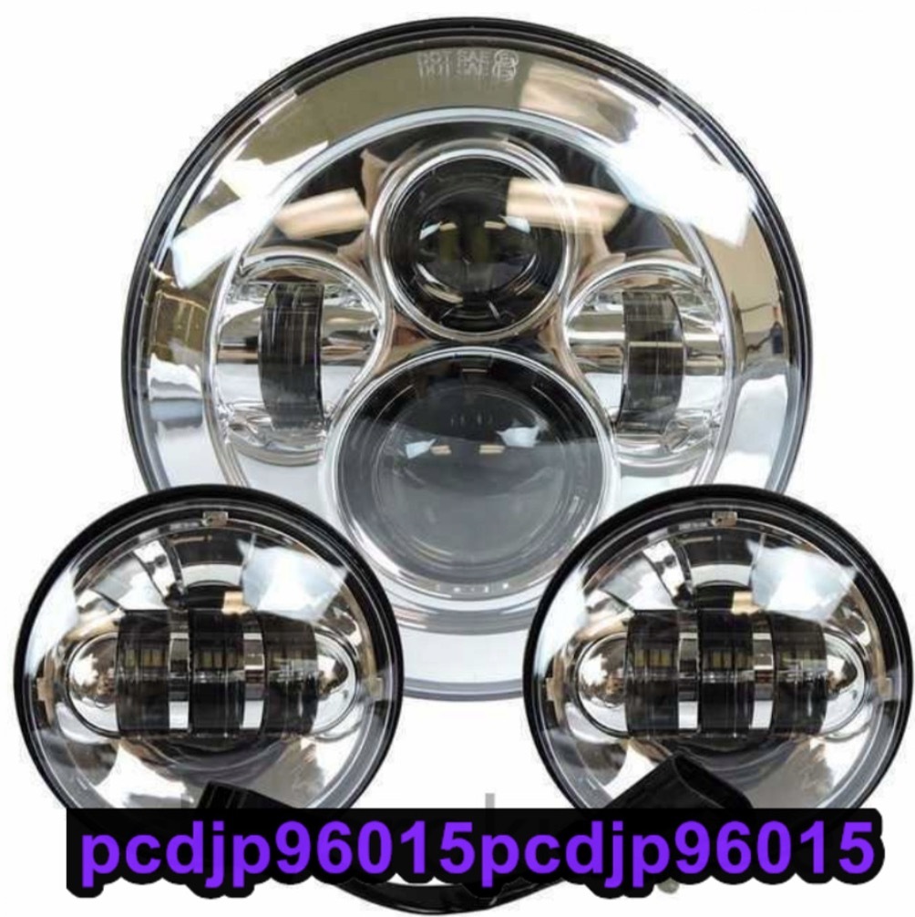 > LED ヘッドライト7インチ ヘイローフォグライト4.5インチ 色クローム ツーリング ダイナ ソフテイル ハーレー