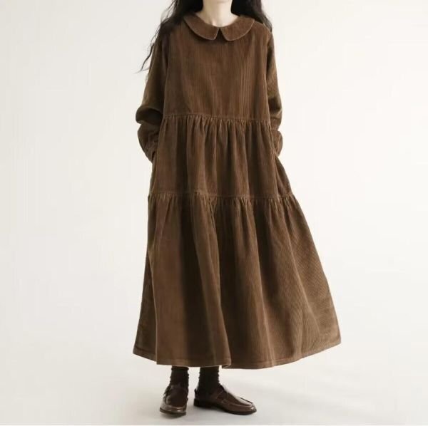 - LB508 ワンピース カジュアル ゆったり 大きいサイズ 体型カバー コーデュロイ 長袖 ロングワンピース L