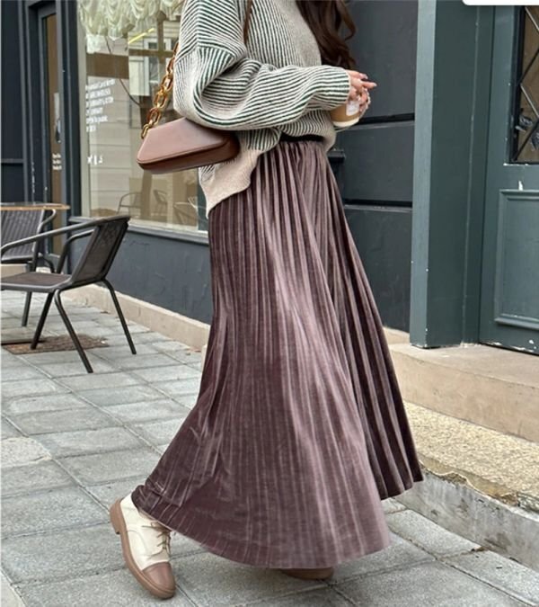 - LB278 2024 のベロア素材 彡ベロアスカート プリーツ フレア Aライン ゴム トレ ライトコーヒー