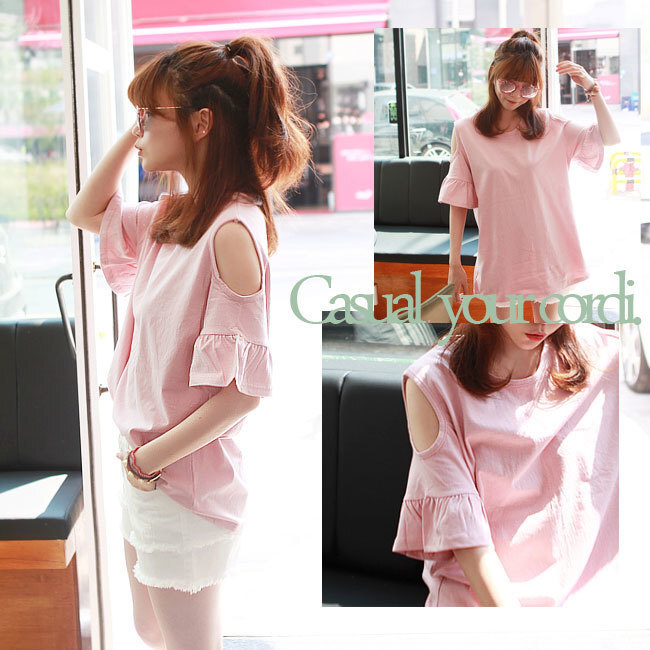 - ★ラブリーカワイイ系★肩あきフリル★カットソー・Tシャツ丈長め★未使用