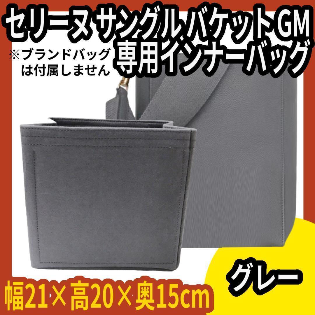 - バッグインバッグ★セリーヌ★サングル★バケット★GM★灰色★大容量ポケット★