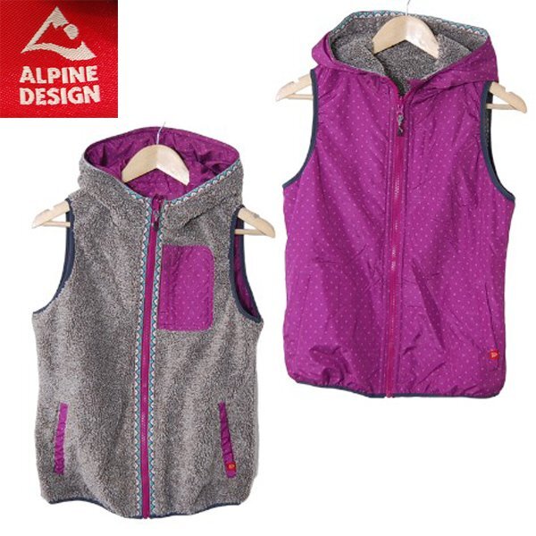> アルパインデザインALPINE DESIGN■リバーシブル ベスト フード付き ジップアップ ボアフリース■L■赤紫系/ブラウン ※NK4328324