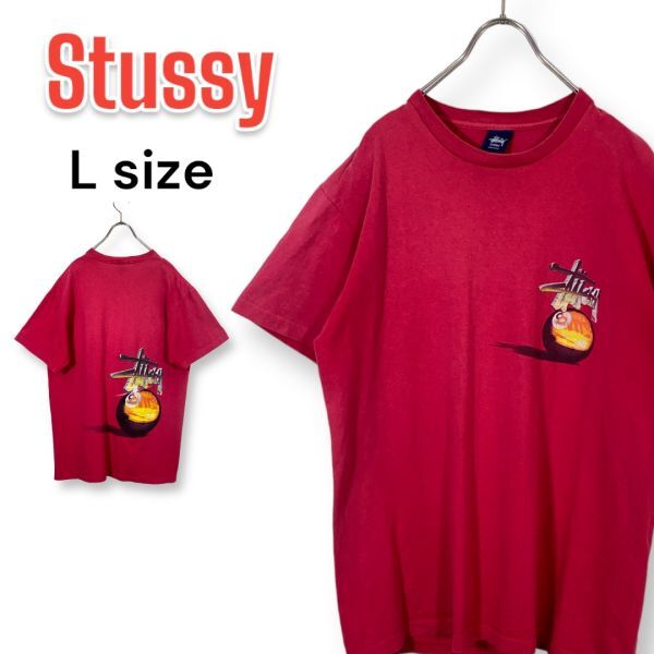 > 90s stussy オールドステューシー 紺タグ Lサイズ USA製 8ボール 半袖Tシャツ STUSSY ヴィンテージ古着 赤 レッド シングルステッチ