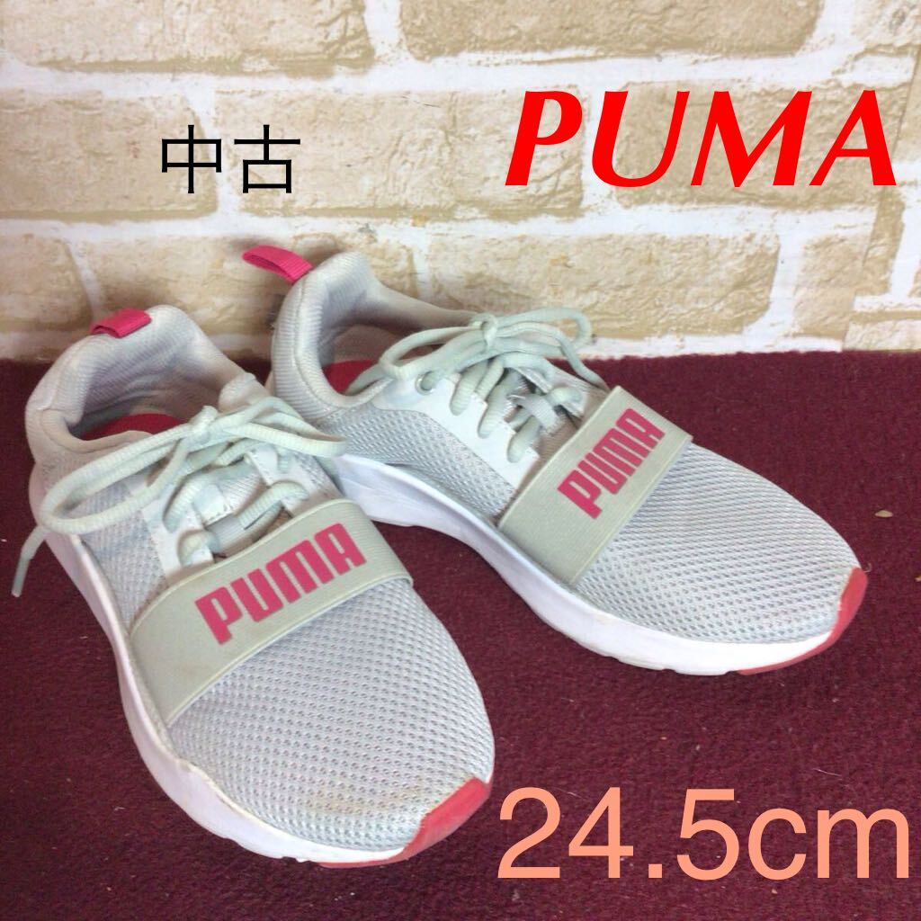 > 【売り切り!送料無料!】A-358 PUMA!スニーカー!グレー!ピンク!24.5cm!ランニング!ウォーキング!おしゃれ!中古!