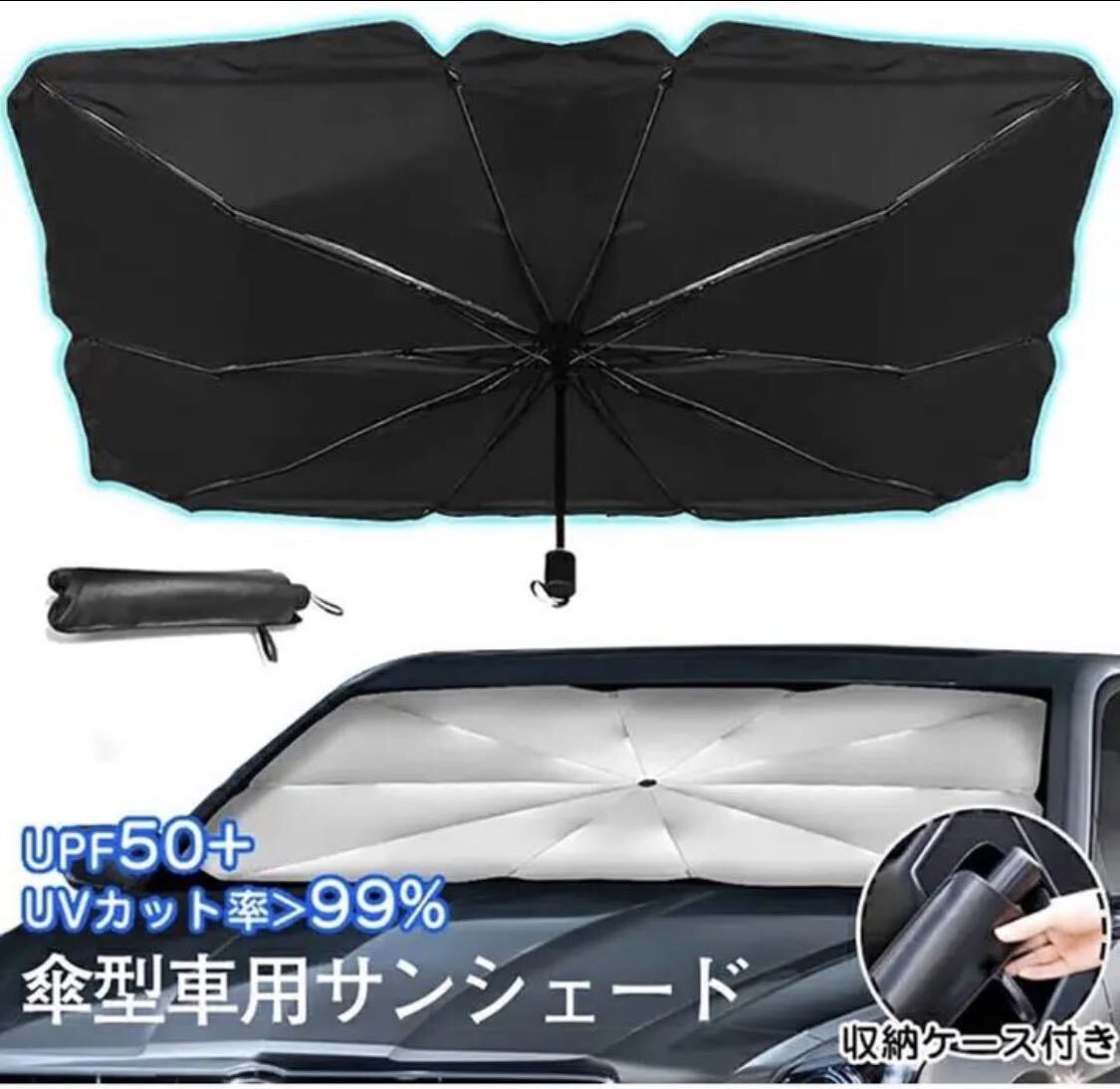 - 車用サンシェード 傘型 車用パラソル フロントシェード 遮光 遮熱 UV 紫外線カット 暑さ対策 収納ポーチ付き 120*65cm