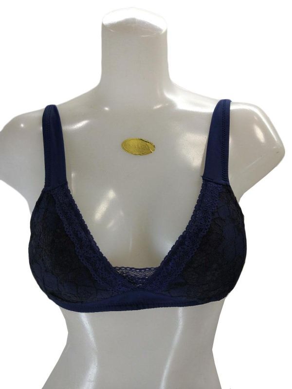 - SI1124◆ 新品 ブラジャー 花柄レース ストラップ調節可 ストレッチ 可愛い お洒落 A75 ネイビー 送料 350円