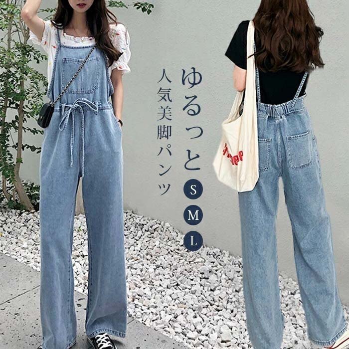 - LB695 サロペット デニム レディース デニムオーバーオール ジーンズ ロングパンツ ゆったり ワイドパンツ デニム素材 ポケット付き L
