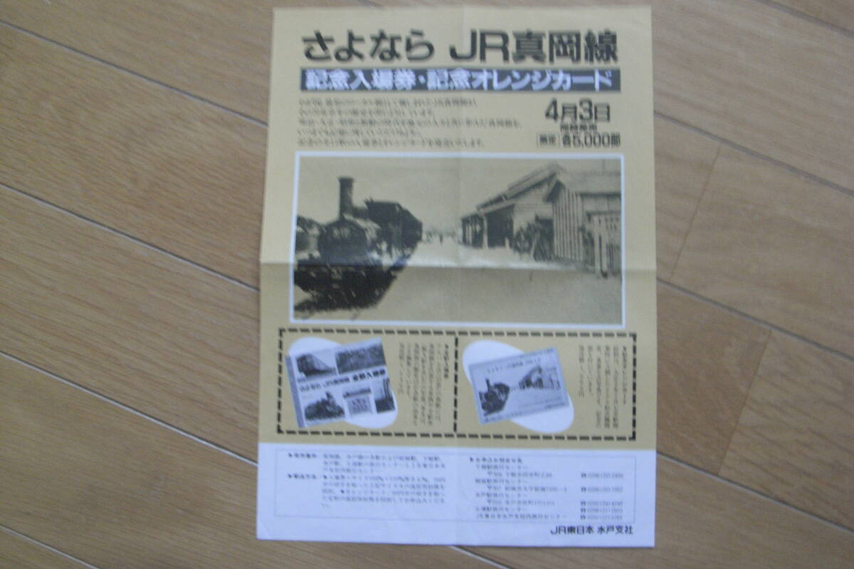 - 「さよならJR真岡線 記念入場券・記念オレンジカード」チラシ JR東日本水戸支社