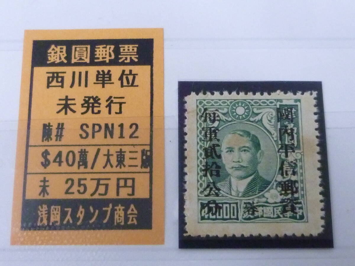 - 24 M №47 旧中国切手 1949年 銀圓時期 陳#SPN12 西川単位 $40萬/大東三版 未発行 未使用NH・VF