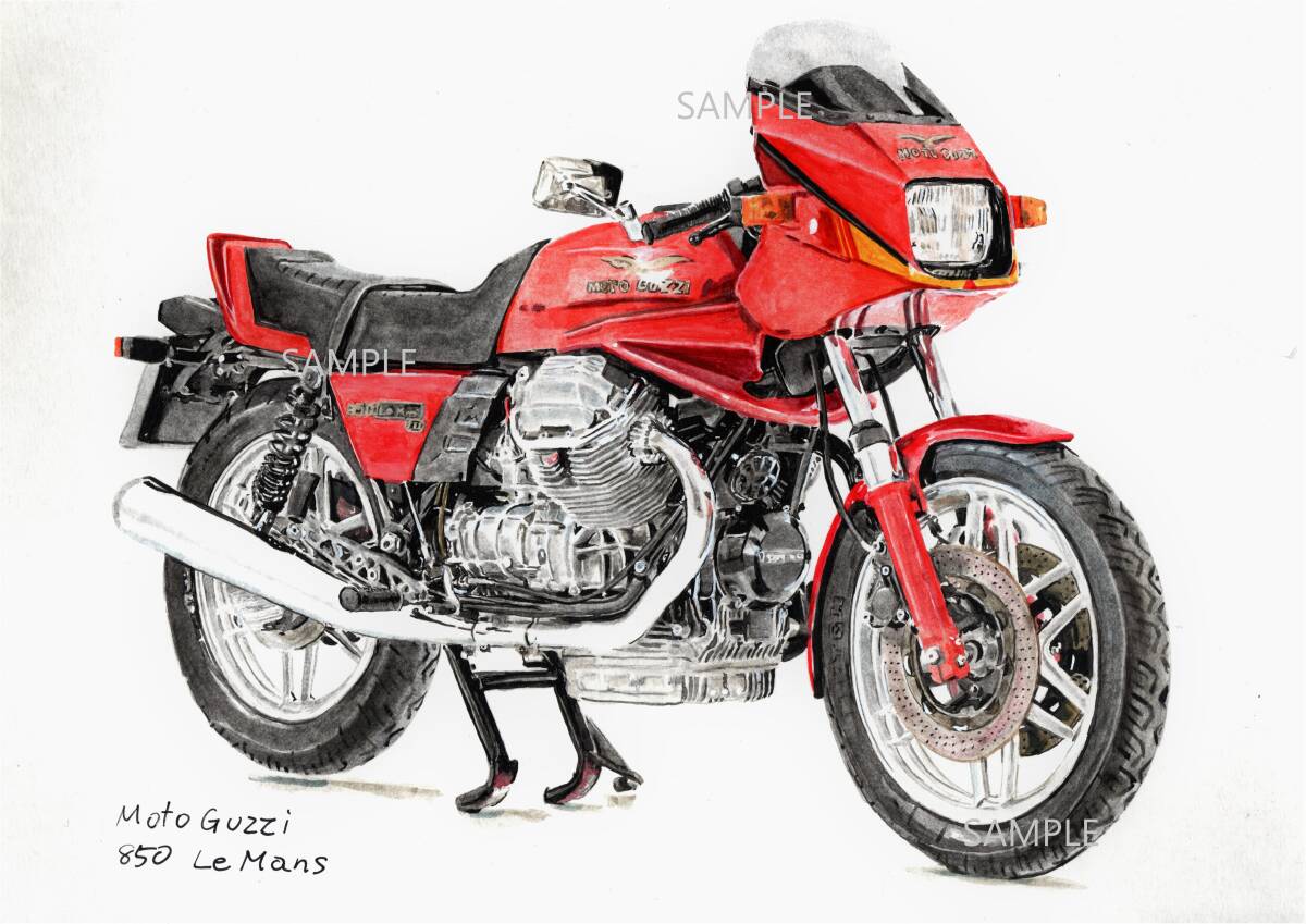 - A4プリントです モトグッチ 850ルマン 水彩画 バイクイラスト