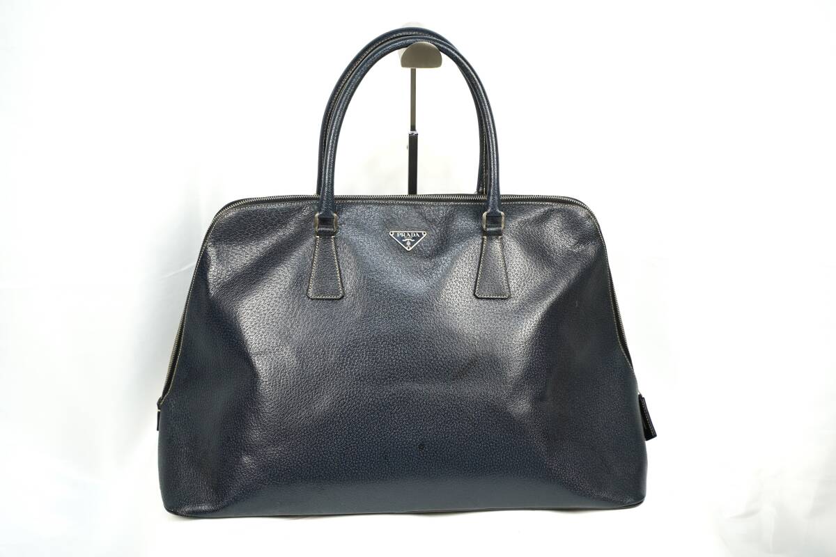 > PRADA プラダ ボストンバック 本革 レザー 濃紺 ネイビー W50 イタリー製