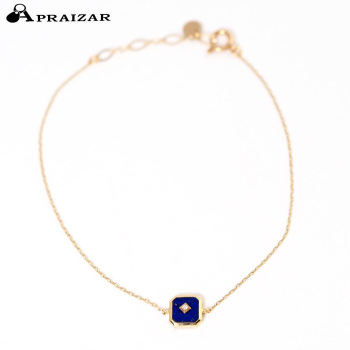 > レターパックOK VENDOME AOYAMA ヴァンドーム青山 K10イエローゴールド ラピスラズリ 1Pダイヤ ブレスレット 品質保証書・ケース付 [63960]