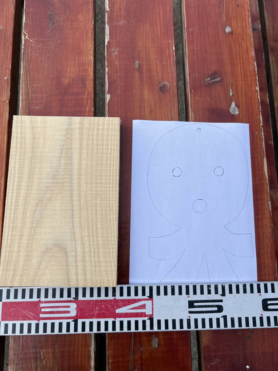 - 送料無料*焼杉用板*タコの型取りコピー紙付/無垢/天然木 /鍋敷/花台/看板/ディスプレー/手作り/おもちゃ/木工/DIY/夏休み工作/すぎ/スギ