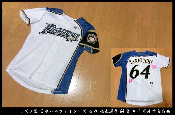 - ■ミズノ製 日本ハムファイターズ 谷口 雄也 64番 バッジ付き 応援 ユニフォーム サイズM 中古良品