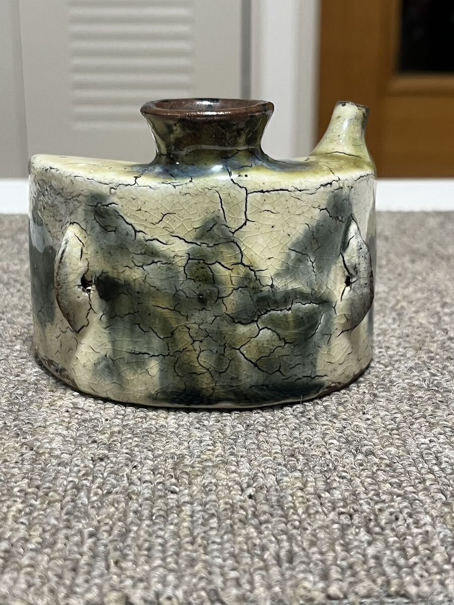 - 琉球 荻縄 茶道具 織部焼 抱瓶 花器 花掛け入れ 酒瓶