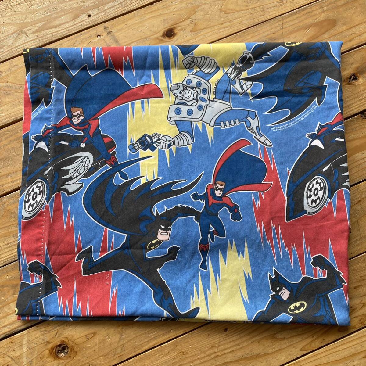 - USAヴィンテージ ベッドシーツ バッドマン リメイク生地 映画 アメコミ ヒーロー カラフル 素材 フラットシーツ アメリカ仕入 総柄 B2011
