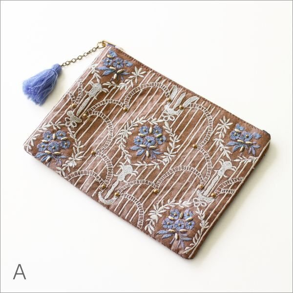 - ポーチ 小物入れ おしゃれ マチなし かわいい デザイン 刺繍フラットポーチ アラベスク 【Aタイプ】 送料無料(一部地域除く) kan2091a