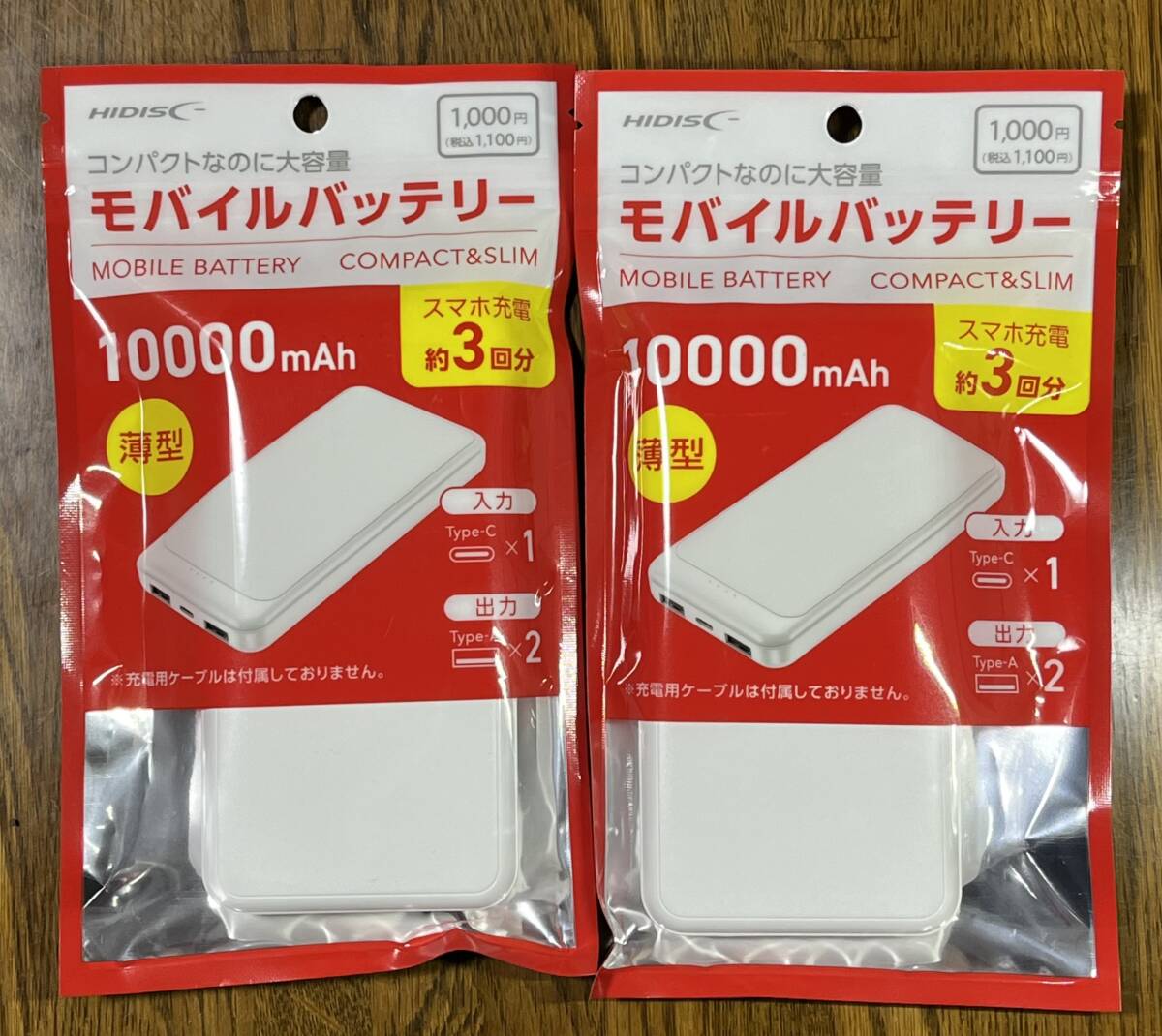 - HIDISC-モバイルバッテリー 【10000mAh】【WHITE・ホワイト ×2個】薄型コンパクトなのに大容量★ゆうパケット似て発送!★