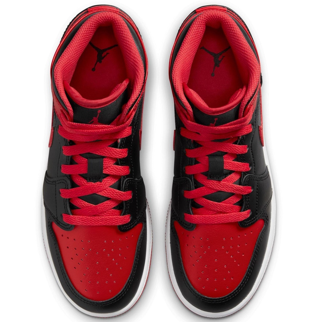 > ■ナイキ エア ジョーダン 1 ミッド GS ブラック/ファイヤーレッド/ホワイト 23.0cm US4Y NIKE AIR JORDAN 1 MID GS DQ8423-060