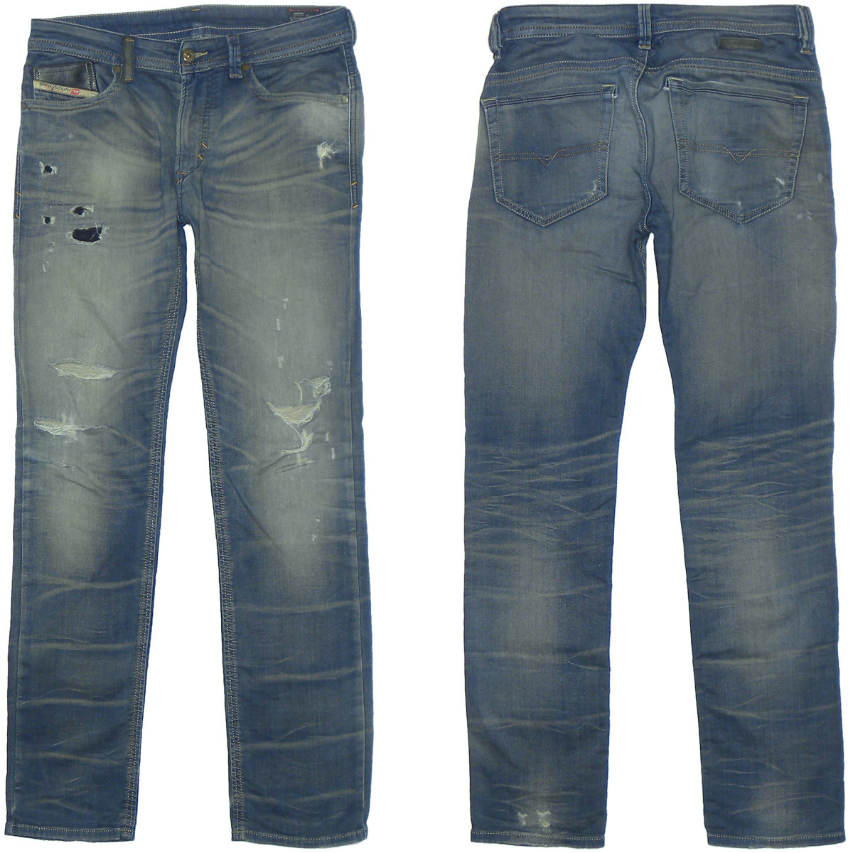 - DIESEL THAVAR W28 ジョグジーンズ デニムスウェットパンツ クラッシュ加工 THAVAR-NE 0604N √Denim+[Sweat/Pants] ディーゼル