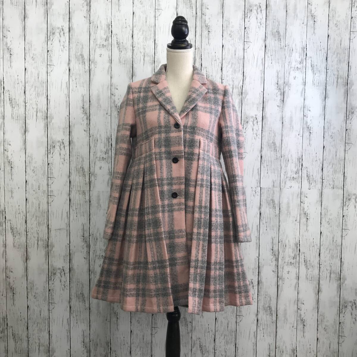 - Little sunny bite リトルサニーバイト チェッカープリーツロングコート Fサイズ ピンクチェック T-296 USED