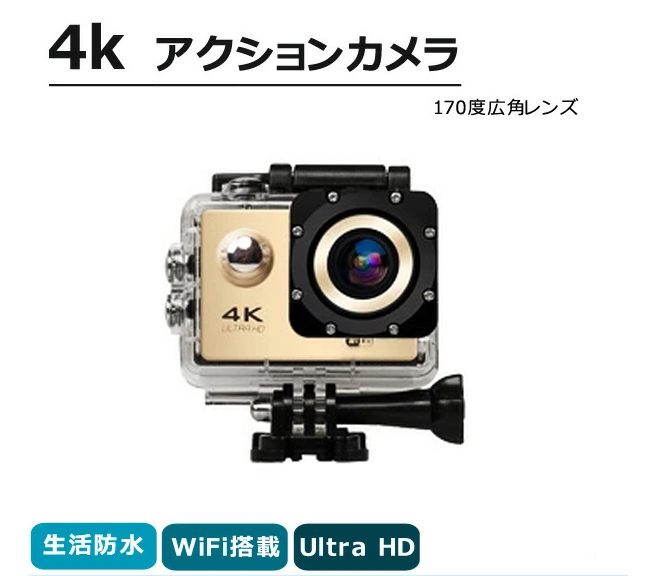 - 送料無料!ゴールド アクションカメラ バイク 4K 1200万画素 WiFiスポーツカメラ バイク用カメラ フルハイビジョン 防水 30M防水 HDMI
