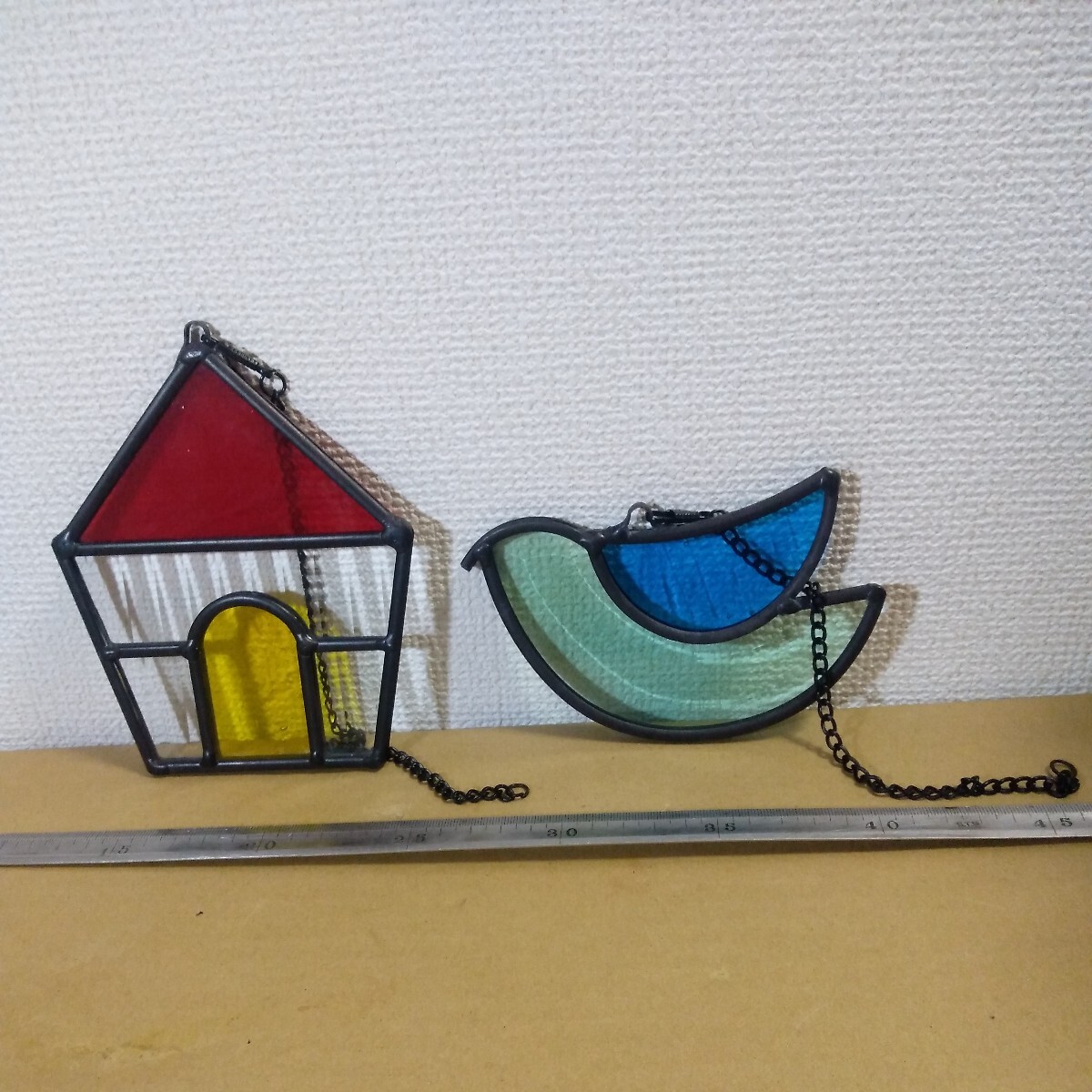 - ティファニー? ステンドグラス 小鳥 トリ 家 ハウス 2点セット 未チェック 詳細不明 ジャンク扱い