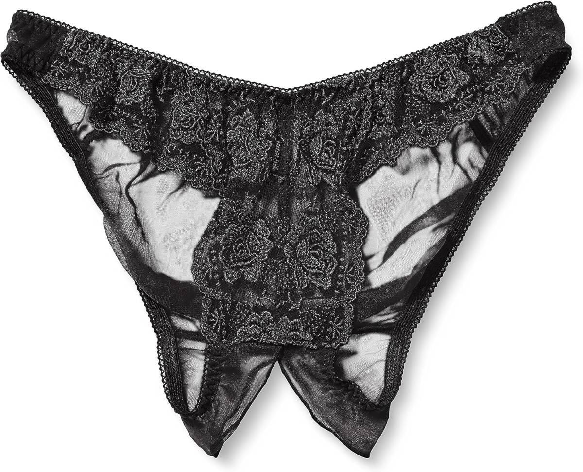 - [ラ ポーム] シースルーオープンクロッチ穴あきビキニショーツ 20ハーフ生地 スケスケ レース ブラックL