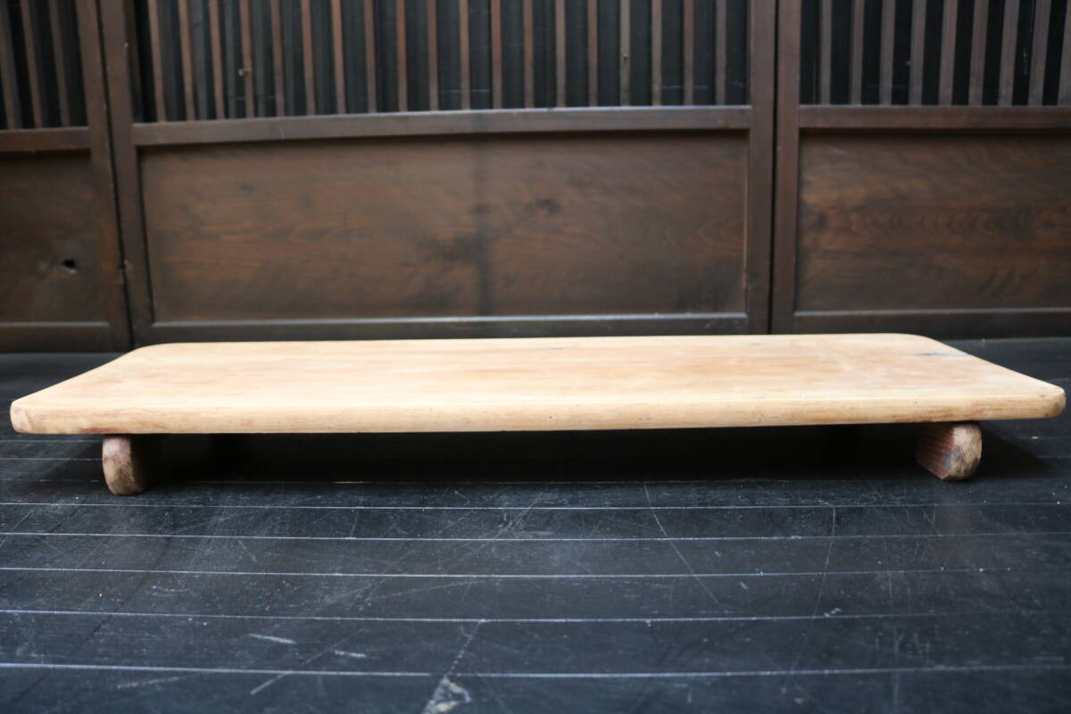 > 【伊董】B78.アンティーク!レトロ!木の枯れた風合いが良い感じの餅板天板楢脚栗大正~昭和作業台展示台木地仕上げ #アンティーク #古道具