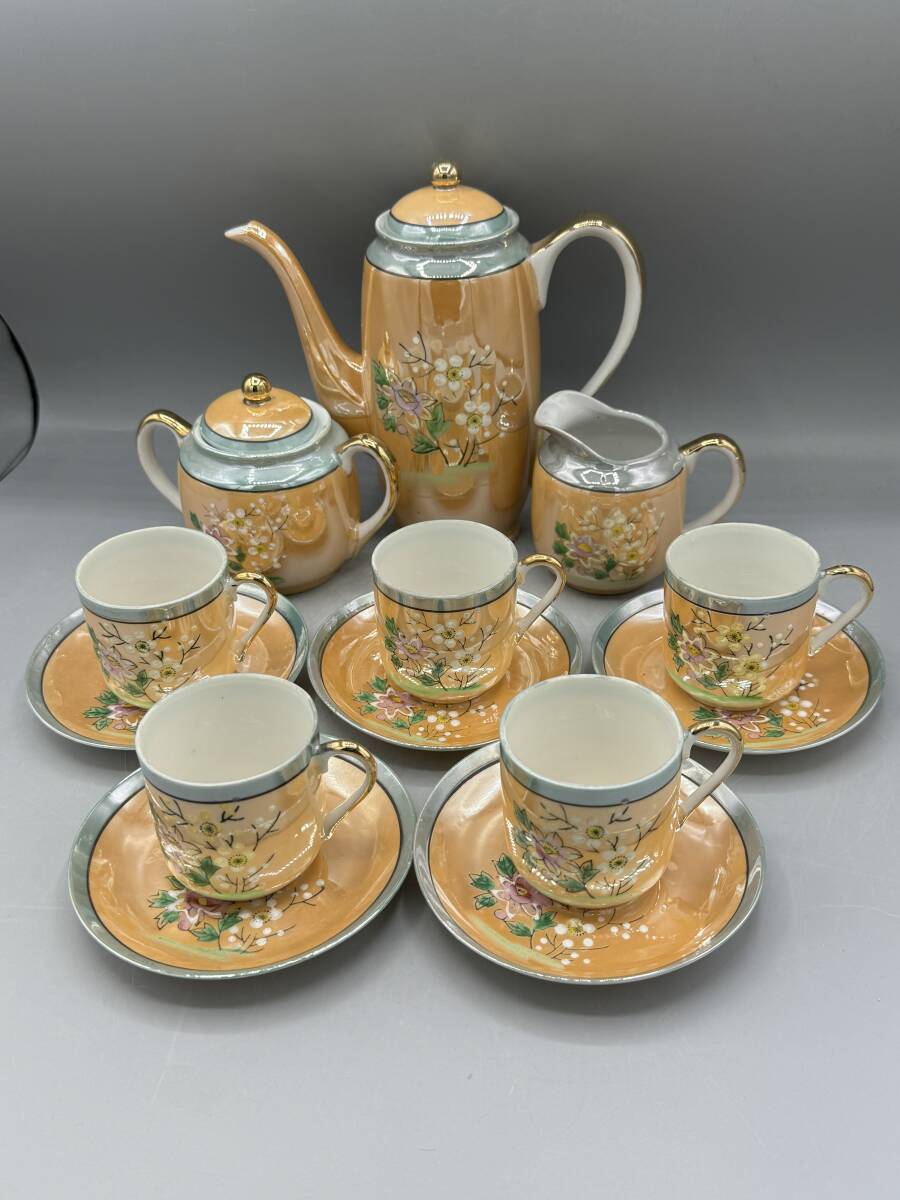 - 里帰り オールドニッポン 5人用 ラスター彩 コーヒーポット シュガーポット クリーマー カップアンドソーサー カップ&ソーサー (788)