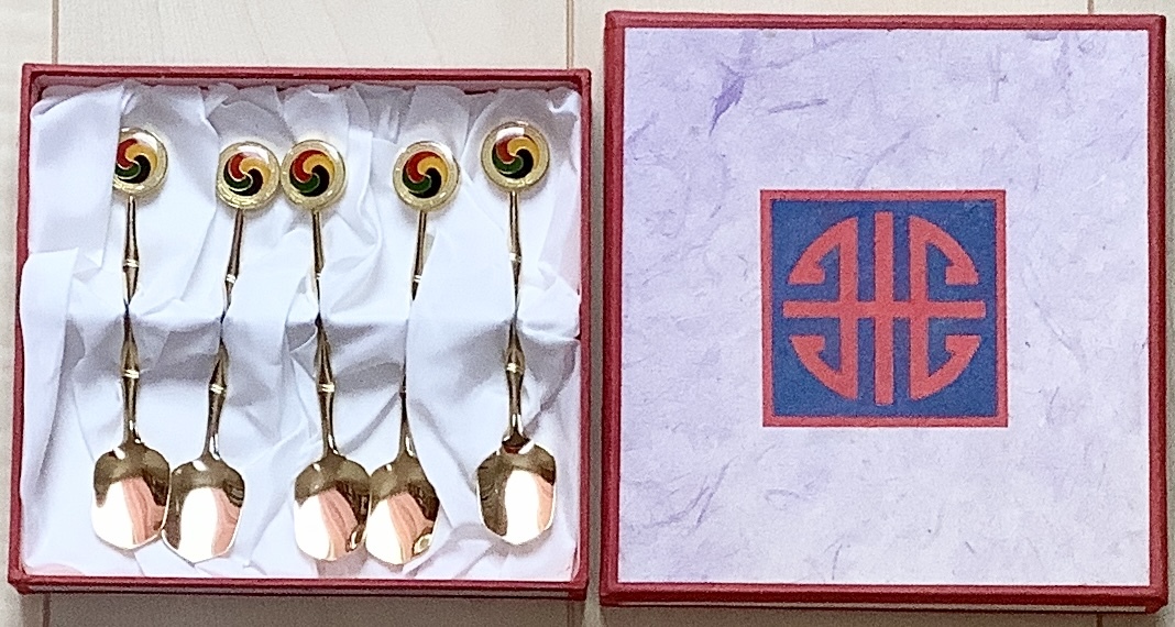 > 未使用品!韓国製 ゴールド ティースプーン 5点セット 箱入り KOREAN FOLK METAL ARTS/送185〜